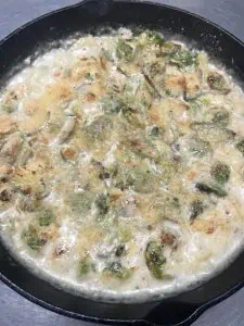 Scatter the Brussels sprouts evenly into the sauce. Top with the remaining cheese.