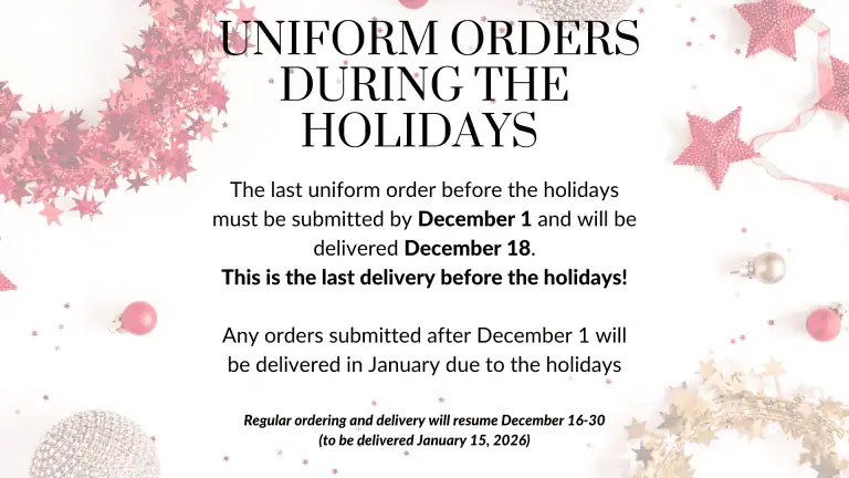 Uniform Orders placed 8/16-9/5 – delivered to school 9/26